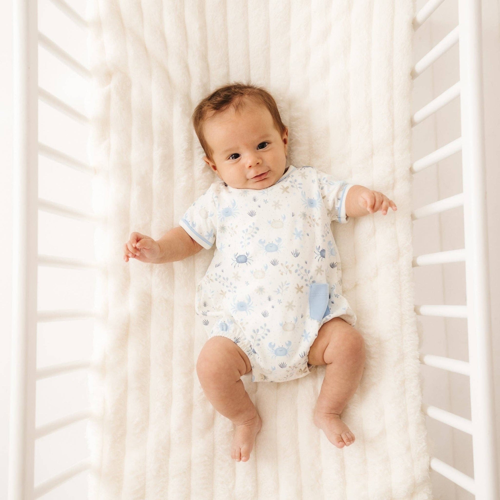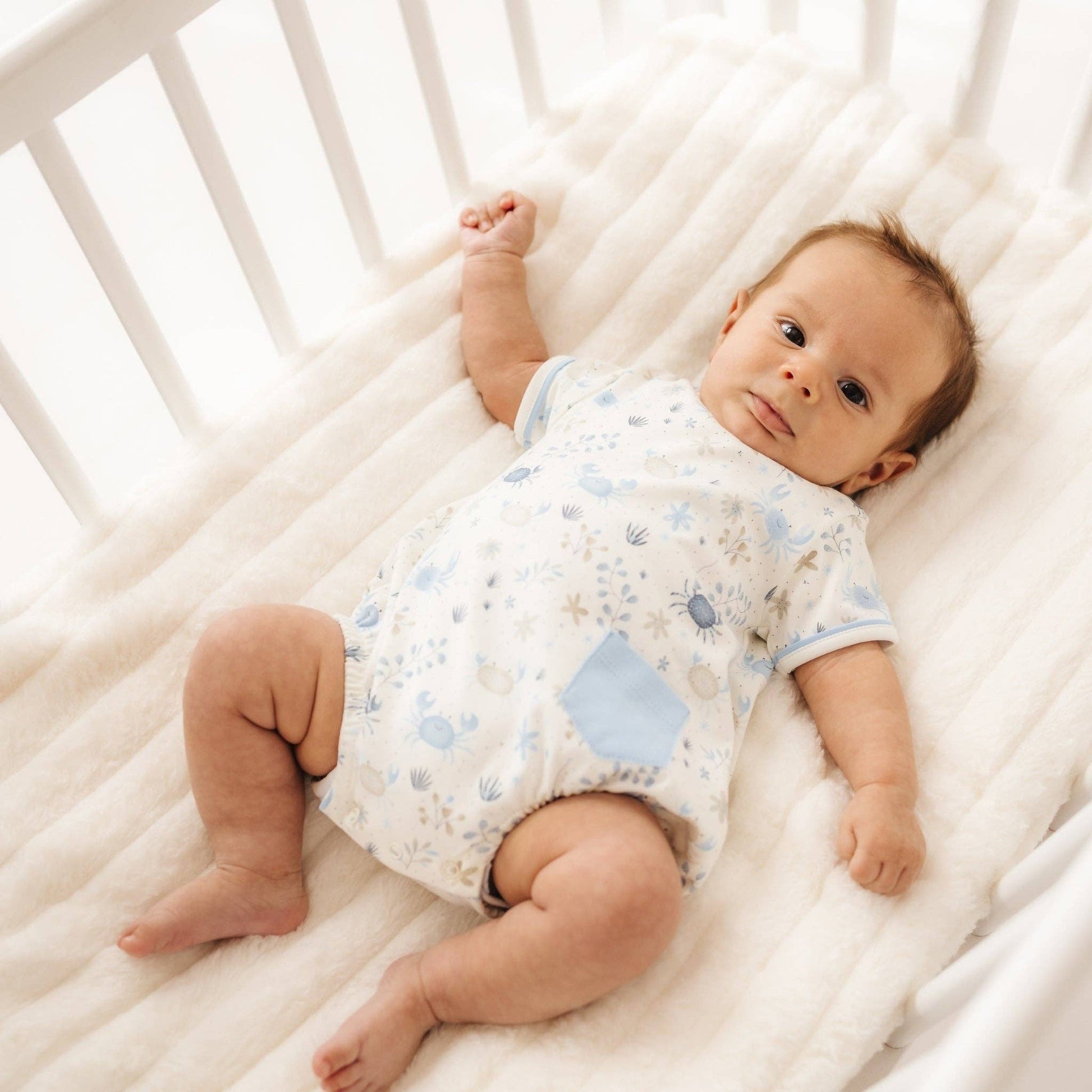 Playful and charming, the Crabby Cove Bubble is a sweet addition to your little one’s wardrobe. This adorable bubble features the cheerful Crabby Cove print for a fun, coastal-inspired look.